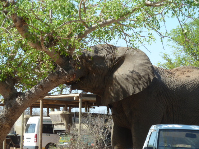 As mentioned, the leopard is highly elusive. People have worked in the park for years and never seen one. At Tschukudu, our guide’s sharp eyes had spotted (pun intended) a leopard slipping quietly through the scrub, and we all saw it for maybe five seconds before its natural camouflage came to its advantage. Not so this fellow below. With a belly full of the impala s/he had dragged up the tree (you can see its skull nearby), s/he was unable to move. The tree was about maybe about 20 metres from the road. Five to six vehicles parked nose towards the tree, full of occupants who gazed at this magnificent creature with quiet awe. For a long time, all that could be heard was the clicking of cameras and the adjusting of larger lenses, eventually dying to quietness. Then the leopard would turn its head or flick a paw, and all the clicking would begin again. It was like a fashion shoot.