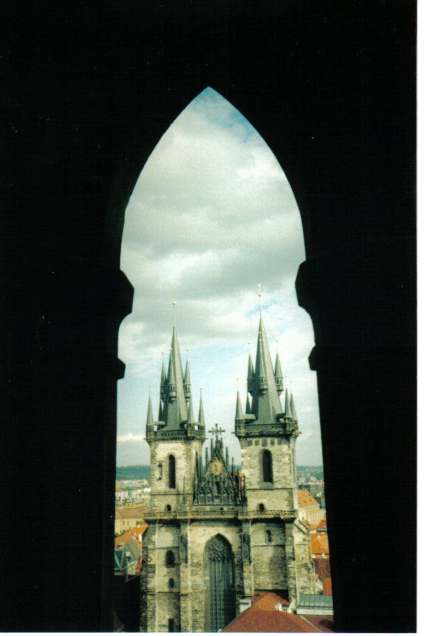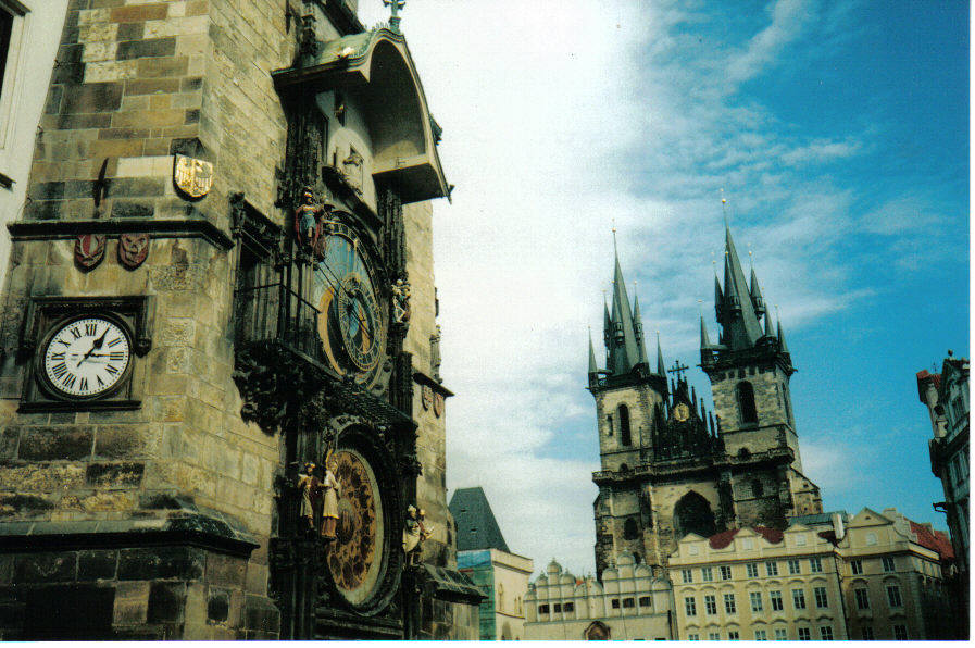 Yes it’s pretty isn’t it. In the background is the Tyn Church in Prague’s Nove Mestro – Old Town Square. People have asked me what camera I used for this photo. I’ll tell you: El Cheapo Pentax Snapshotsonic. Interesting to note that this basic non-digital device—with its proper film and no zoom options—produced many photos that I like better than my zillions of digital travel shots. I guess when you only have 24 or 36 shots at your disposal, you take the time to compose your image, and take only one or two photos of a scene, not fifteen plus.