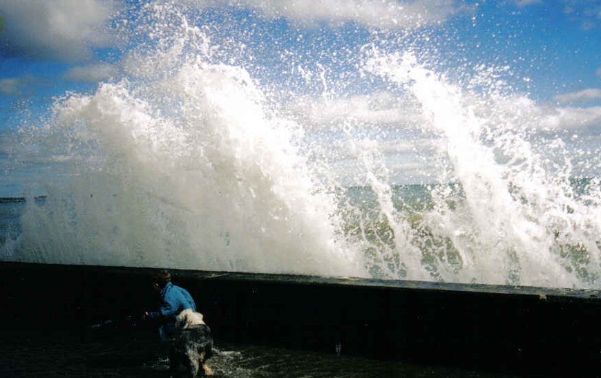 Ah, this amazing wave that broke over the wall, frightening a sheepdog and his small boy. It was sighted at the end of an impromptu road trip through Northern Ireland, at the end of a northern winter.